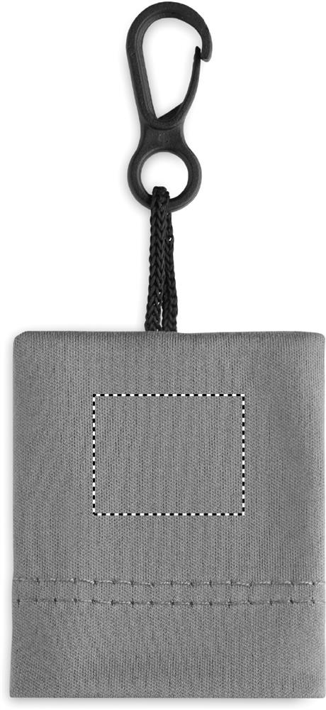 RPET reinigingsdoekje met vast zakje om in op te bergen, inclusief PP plastic ophanghaak.