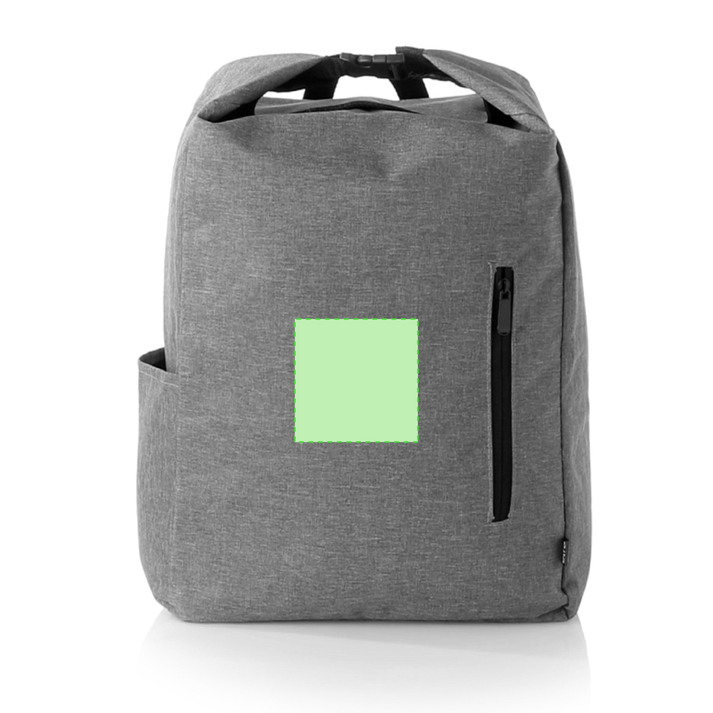 Natuurlijn rugzak van duurzaam 300D RPET, gemaakt van gerecycled plastic, om het hergebruik van plastic afval aan te moedigen en bij te dragen aan de duurzaamheid van de planeet. Hoofdvak met gespsluiting en zijvak. Verstelbare gewatteerde schouderbanden en RPET-embleem op buitenlabel.