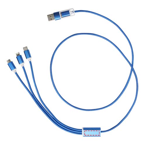 Deze kabel heeft een USB-A en een Type-C ingangsconnector gecombineerd met een Type-C, een Micro USB en een Lightning/Micro USB combi-uitgangsconnector. Dankzij al deze aansluitingen kun je de meeste iOS/Android-smartphones, camera's, powerbanks en oordopjes opladen. De kabel is 100 cm lang en is gemaakt van gerecycled aluminium en RPET.